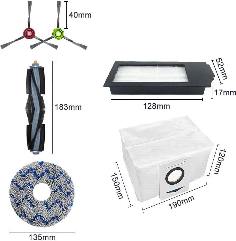 Alles was dein DEEBOT braucht! Dieses INF Set enthält 22 Ersatzteile: 2 Kopfbürsten, 6 HEPA Filter, 12 Seitenbürsten und 2 Reinigungsbürsten. Perfekt kompatibel mit Ecovacs DEEBOT X1 Omni, X1-e, X1 Turbo, X1 und X1 Plus. Die Bürsten reinigen gründlich ohne Kratzer, die HEPA Filter fangen selbst feinste Partikel. Regelmäßiger Wechsel hält deinen Sauger leistungsstark. Keine Originalteile aber gleiche Qualität. Sparpackung für lange Zeit!
