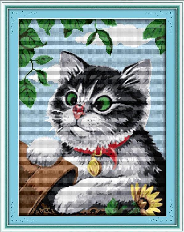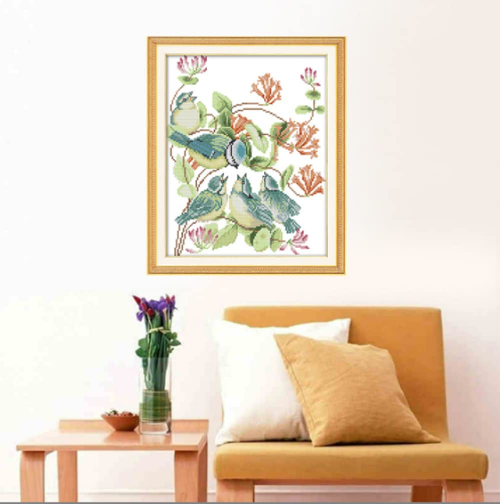 ABEUTY Kreuzstich-Set Für Erwachsene & Anfänger - 14ct Mit Katzen & Vogel Motiven