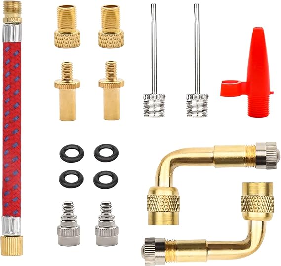 Boah, dieses Ventiladapter-Set von Flaroey ist echt praktisch! Mit 16 Teilen hast du für jede Aufblas-Situation den passenden Adapter dabei. Enthält 4x DV/SV-Ventiladapter, 2x AV-Ventiladapter, 2x SV-Ventiladapter, 2x Ballpumpen-Nadeln und verschiedene konische Düsen. Alles aus massivem Messing und hochwertigem ABS-Kunststoff - richtig robust und langlebig. Die Gummi-O-Ringe verhindern lästige Luftverluste. Perfekt für Fahrräder mit Presta- oder Schrader-Ventilen, aber auch für Sportbälle, Luftballons und aufblasbares Spielzeug. Super einfach zu verwenden und mit nur 2oz Gewicht auch easy zu transportieren. Einfach ein Must-Have für jeden, der regelmäßig was aufpumpen muss!