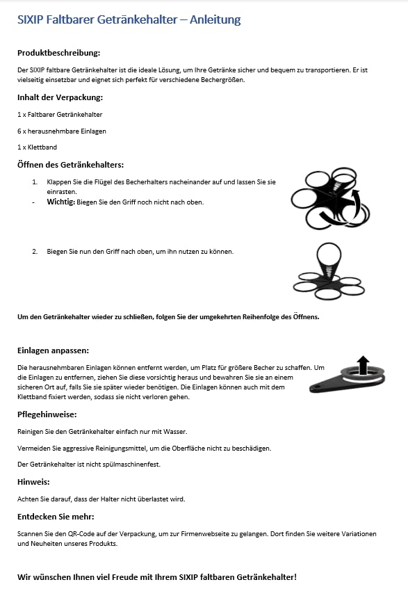 Endlich alle Getränke auf einmal tragen! Dieser praktische Becherhalter nimmt bis zu 6 Becher sicher auf - ob Kaffee, Bier oder Softdrinks.\n\nAus robustem ABS-Material mit 3kg Tragkraft pro Halter. Faltbar und drehbar für einfachen Zugriff auf deine Getränke.\n\nNur 14,5x7x4cm groß und 63g leicht - passt zusammengeklappt in jede Tasche. Perfekt für Festivals, Konzerte, Sportevents oder Gartenpartys.\n\nIm 2er-Set - einer für dich, einer für einen Freund. Nie wieder Getränke jonglieren oder verschütten!\n\nMach jede Outdoor-Veranstaltung stressfreier - mit beiden Händen frei für Essen, Tanzen oder Applaudieren. Ein echter Game-Changer!