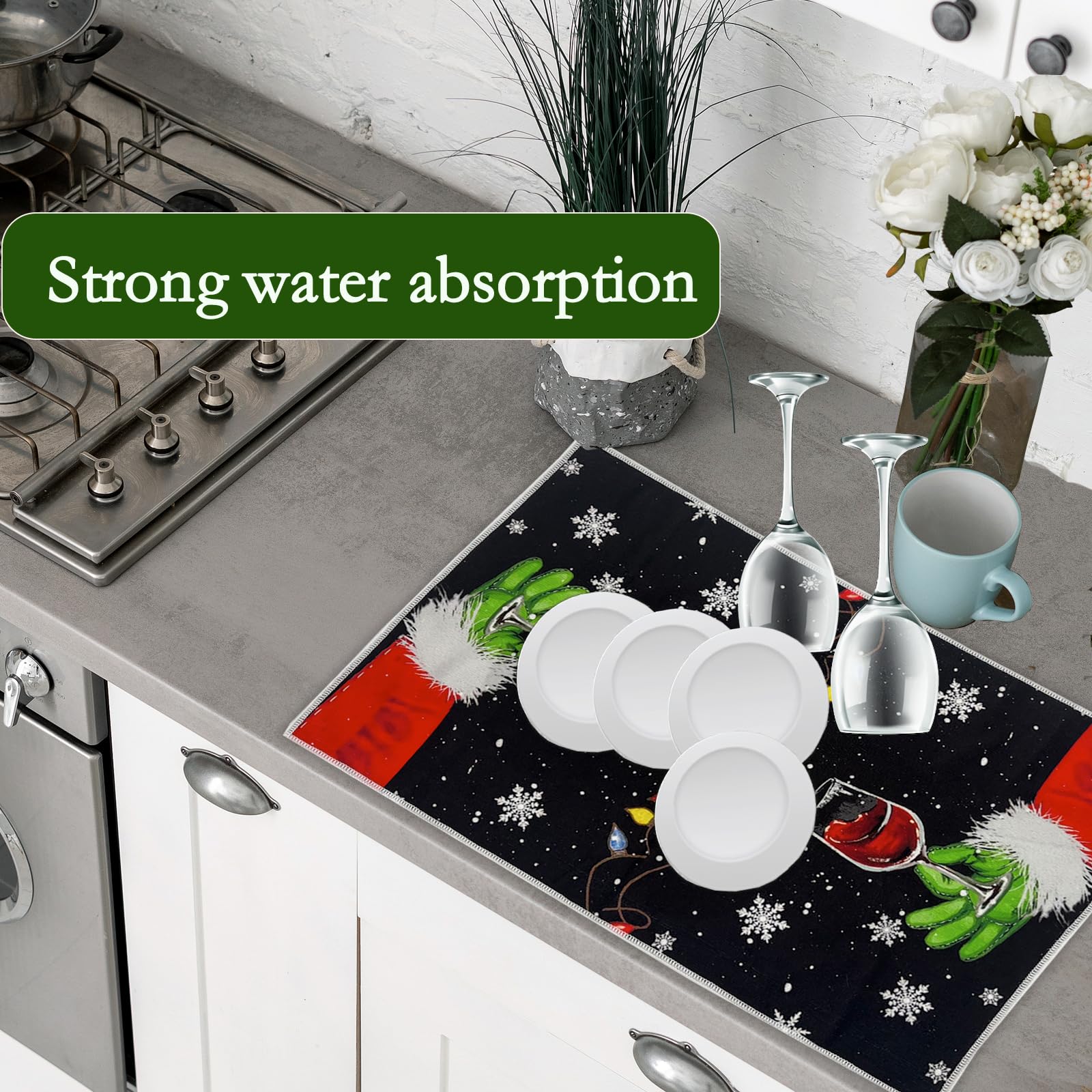 Diese weihnachtlichen Geschirrtücher bringen festliche Stimmung in deine Küche! Das 2er-Set mit den Maßen 40x60cm ist nicht nur super praktisch, sondern sieht auch noch richtig hübsch aus mit den festlichen Weihnachtsmotiven. Die Tücher sind weich, saugstark und entfernen mühelos Wasser- und Fettflecken vom Geschirr. Gleichzeitig sind sie verschleißfest und langlebig - kein Verformen auch nach langer Nutzung. Perfekt als Tischdeko für den festlich gedeckten Tisch oder einfach als Deko in der Küche. Die Reinigung ist denkbar einfach: Einfach ausspülen und schon sind sie wieder hygienisch sauber. Du kannst sie nicht nur für Geschirr verwenden, sondern auch zum Abwischen von Arbeitsplatten oder Spülbecken. Und als Geschenk für Familie und Freunde in der Weihnachtszeit sind sie einfach ideal! Diese vielseitigen Geschirrtücher kombinieren praktischen Nutzen mit festlicher Dekoration - da macht die Weihnachtsbäckerei gleich doppelt Spaß!