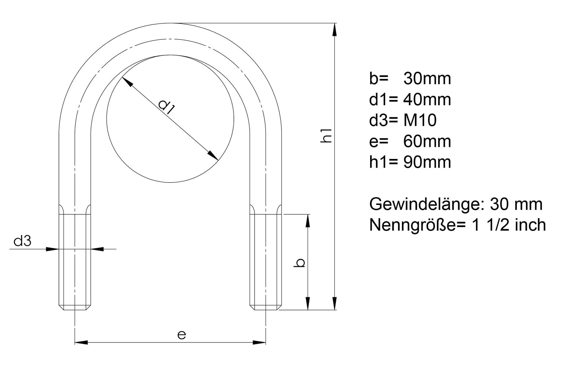 Design61 Bügelschrauben M10 X 90mm - 4x Set Galvanisch Verzinkt | U-Bolzen Für Rohre & Metallbau
