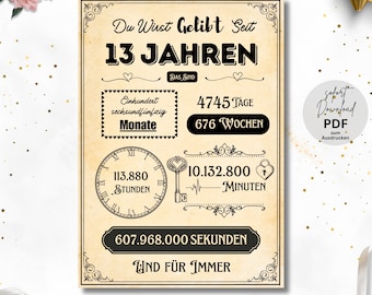 HUKUMA 13. Geburtstag Deko Set - Geliebt Seit 13 Jahren Mit Foto-Girlande