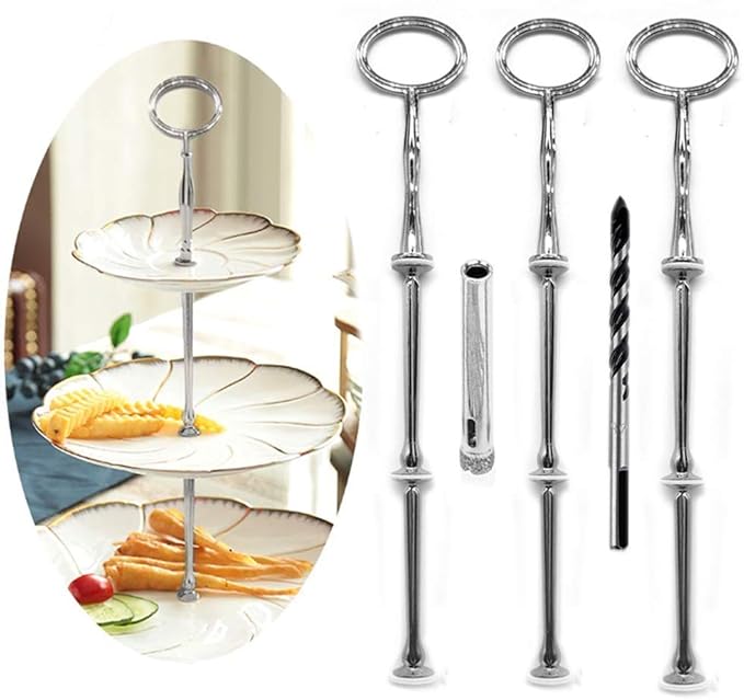 Wow, mit diesem goldenen Etageren-Set wird jede Feier zum Blickfang! Das 3-teilige Set aus hochwertiger Zinklegierung lässt sich super einfach zusammenbauen - ob ein-, zwei- oder dreistöckig. Perfekt für Torten, Cupcakes, Desserts, Käseplatten oder Obst. Im Lieferumfang sind sogar zwei verschiedene Bohrer enthalten - ein Hohlbohrer und ein Vollbohrer für maximale Flexibilität. Wichtig: Die Platten sind nicht dabei, aber du kannst sie ganz nach deinem Geschmack aussuchen. Einfach in die Mitte der Platte bohren (mit Wasser als Schmiermittel) und die Stangen eindrehen - schon hast du einen individuellen Tortenständer. Ideal für Hochzeiten, Geburtstage, Buffets oder Afternoon Tea. Das EU-patentierte Design (Nr. 007362793) garantiert dir ein einzigartiges Produkt. Mach deine nächste Party unvergesslich!