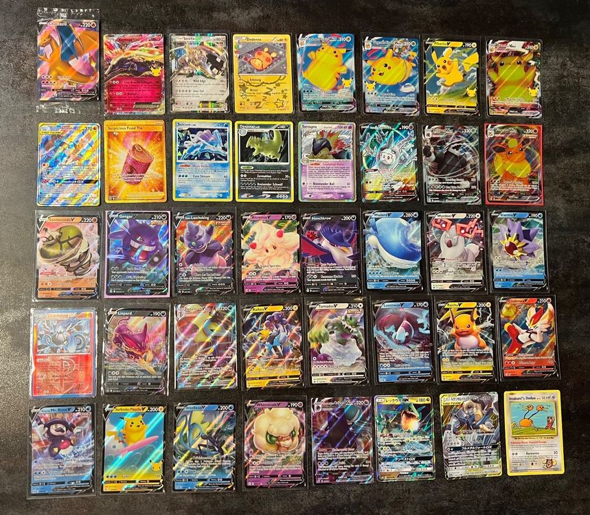 Pokémon-Fans aufgepasst! Dieses 165-teilige Karten-Set ist ein absoluter Traum für Sammler und Spieler. Enthält 7 Vstar, 29 Vmax, 16 V, 2 GX und 1 Phase Karten - alles Einzelstücke ohne Duplikate! Die Karten glänzen in Gold, Silber und Schwarz mit lasergravierten Designs, die einfach nur beeindruckend aussehen. Aus hochwertigem PVC - viel langlebiger als normale Papierkarten. Mit 8,8x6,3cm Standardgröße perfekt zum Spielen oder Sammeln. Fördert strategisches Denken und Kreativität bei Kindern. In einer coolen Geschenkbox verpackt - ideal für Geburtstage, Weihnachten oder einfach so! Auch erhältlich in englischer Version. Dein Kind wird aus dem Häuschen sein!