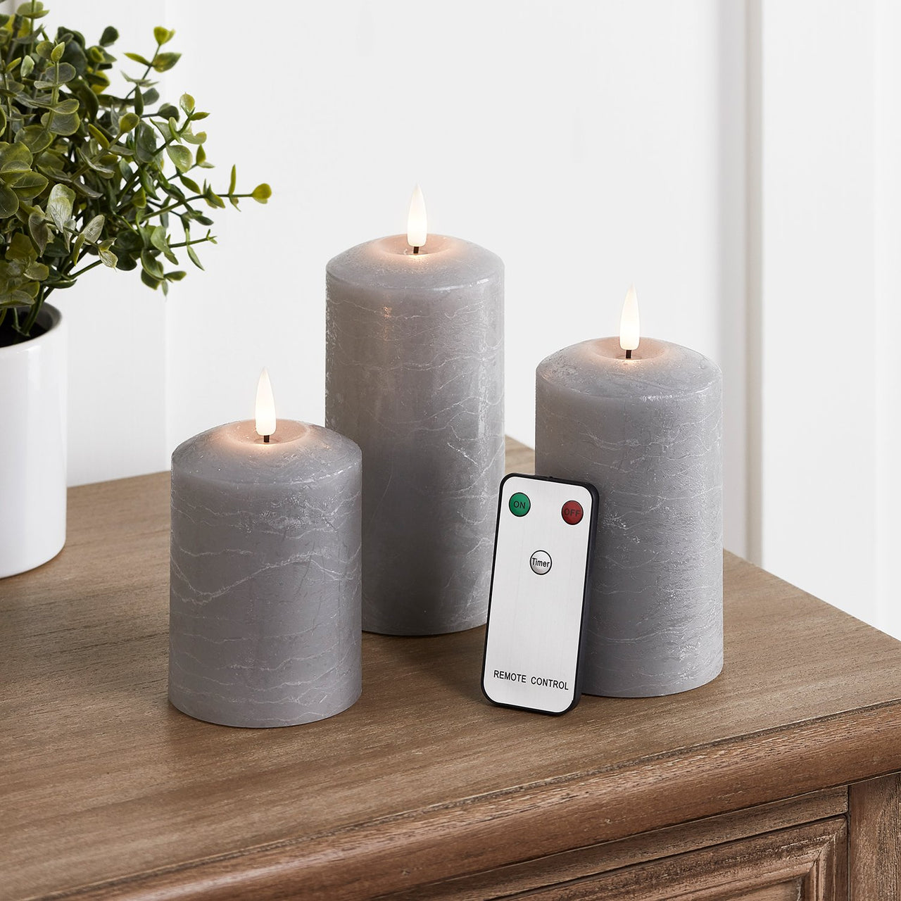 Wow, was für eine Stimmung! Dieses 5er Set LED-Stumpenkerzen von Lights4fun bringt gemütliches Flackern in dein Zuhause - ganz ohne Feuergefahr! In verschiedenen Höhen (10cm, 12,5cm, 15cm, 17cm), alle in schickem Grau. Perfekt für Tischdeko, Regale oder überall, wo es gemütlich werden soll. Mit praktischer Fernbedienung ein- und ausschalten oder den 6-Stunden-Timer nutzen - die Kerzen gehen dann automatisch aus und am nächsten Tag wieder an. Batteriebetrieben (CR2032 inklusive), bleiben immer kühl und sind absolut sicher. IP20 für Innenbereich. Mach dein Zuhause zur Wohlfühloase - ob für romantische Abende, Feiern oder einfach nur zum Entspannen!