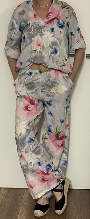 Dieses Leinen-Set für Damen ist der perfekte Sommer-Begleiter! Besonders in großen Größen erhältlich - endlich mal was, das wirklich passt. Bestehend aus einem kurzärmligen Top und einer langen, weiten Hose - super bequem und luftig. Aus einer feinen Musselin-Baumwoll-Mischung, die sich angenehm auf der Haut anfühlt und atmungsaktiv ist. Perfekt für heiße Tage, ob zuhause, im Urlaub oder unterwegs. Der lockere Schnitt sorgt für maximale Bewegungsfreiheit. Einfach anziehen und den Sommer genießen - damit bist du immer stylisch und bequem unterwegs. Vergiss nicht, die Größentabelle zu checken bevor du bestellst!
