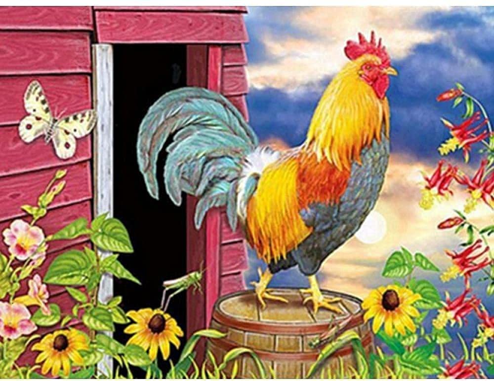 Awesocrafts Kreuzstich Set Hähnchen - Vorgedruckter Stoff 11CT 47x29cm Mit Garn & Nadeln