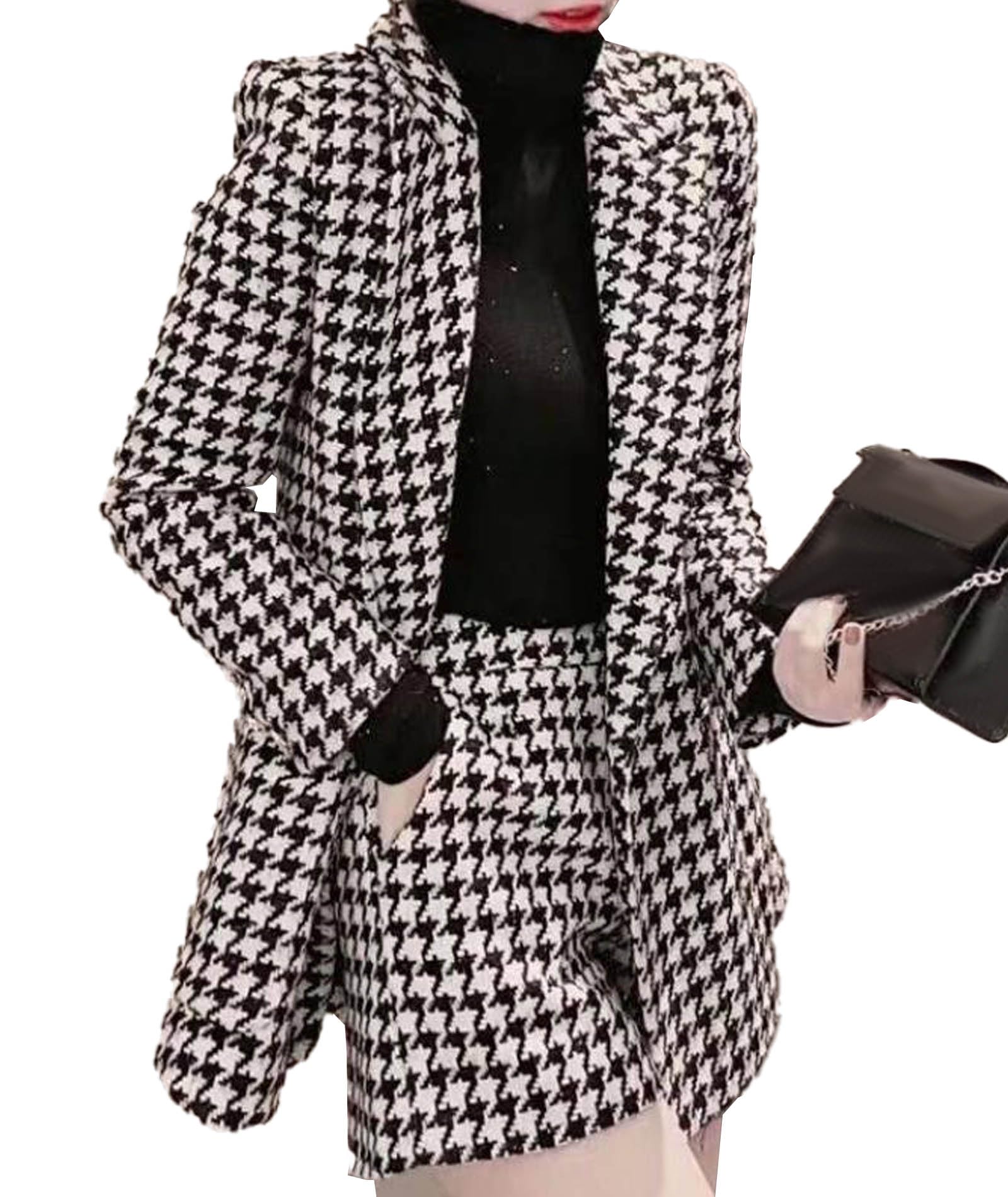 Dieses 2-teilige Damen-Set ist perfekt für den Business-Look! Bestehend aus langarmigem Blazer und figurbetonten Shorts. Mit elegantem Hahnentritt-Muster für einen klassischen Touch. Aus 100% Polyester - leicht, weich und pflegeleicht. Vorne offener Schnitt, hüftlang für moderne Silhouette. Ideal für Büro, Arbeit oder besondere Anlässe. Kann als Set getragen oder einzeln kombiniert werden. Perfekt für Frühling, Herbst und Winter. Sieh professionell und stylisch aus - ohne auf Komfort zu verzichten. Ein vielseitiges Outfit für die moderne Frau!