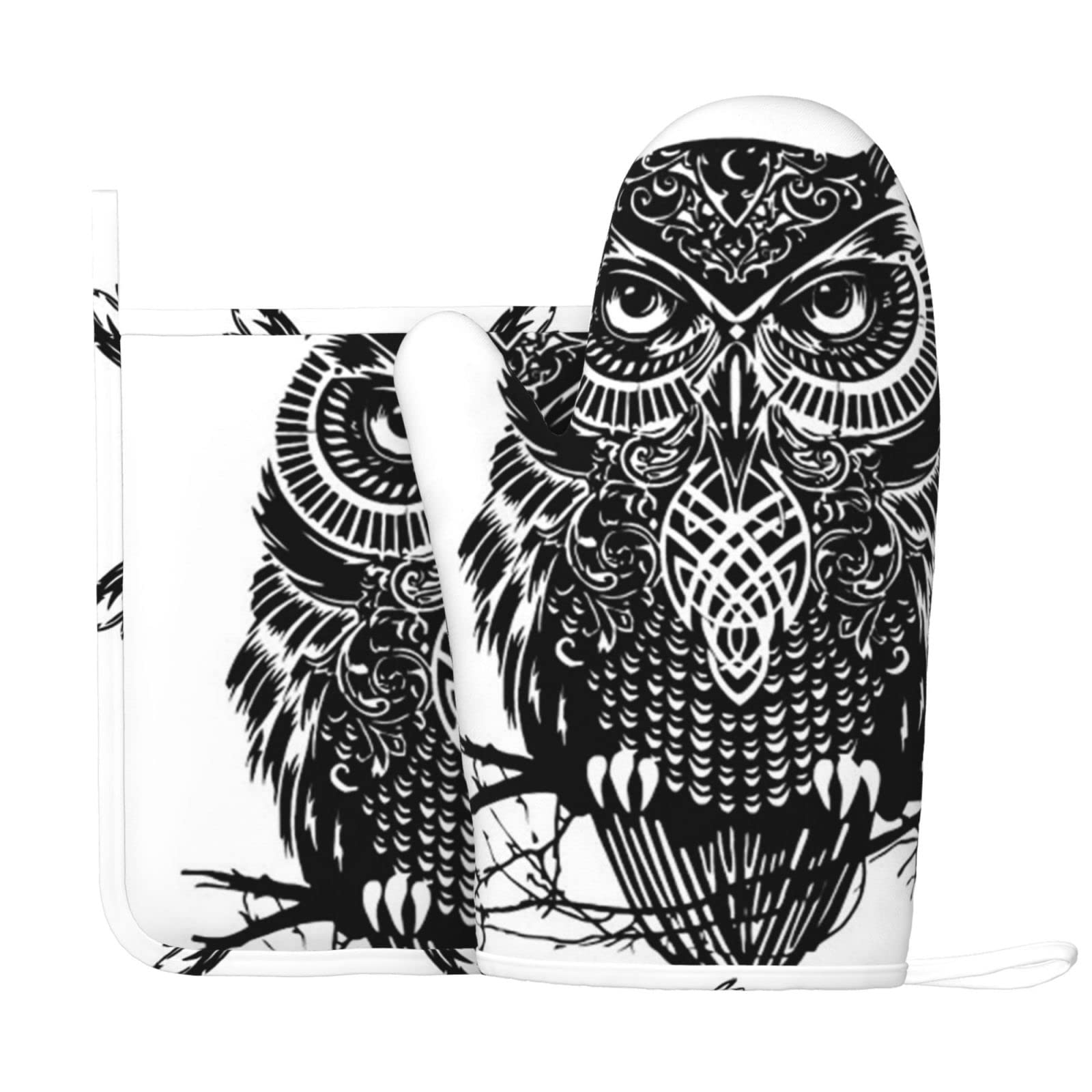 Ofenhandschuhe & Topflappen Set - Hitzebeständig Bis 180°C Mit Süßen Eulen-Motiv