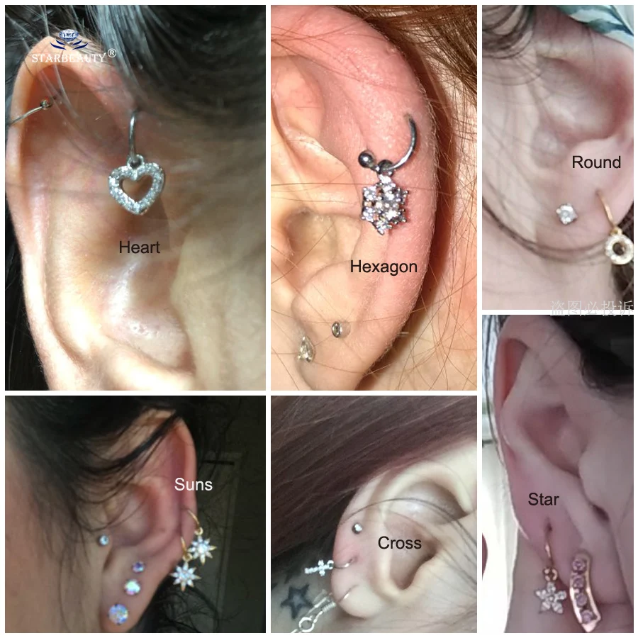Crdifu 3er Set Hufeisen Piercings - Glitzer CZ Steine & Stern/Herz Design Für Helix, Tragus & Mehr