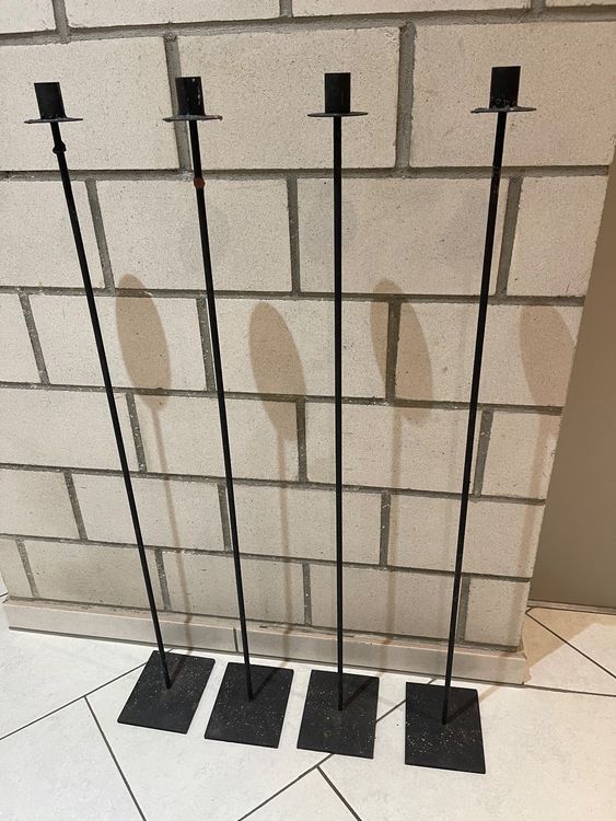 Super stylische Kerzenständer für gemütliche Stunden! Dieses 4er-Set in mattem Schwarz bringt Sofort-Atmosphäre in dein Zuhause. Die Stabkerzenhalter haben ein elegantes Weinglas-Design und sind aus hochwertigem Metall gefertigt. Mit 7 cm Höhe und 6,8 cm Basis-Durchmesser stehen sie sicher und stabil. Passend für Kerzen mit 1,5-2,2 cm Durchmesser. Perfekt für Esstisch, Wohnzimmer, Kamin oder Regal - ob für romantische Abende, Weihnachten, Hochzeiten oder einfach so. Der Rand fängt tropfendes Wachs auf und die Reinigung geht leicht mit einem weichen Tuch. Rostfrei und langlebig - diese Kerzenständer begleiten dich durch viele gemütliche Stunden! Auch super für Café, Bar oder Hotel-Dekoration. Einfach Kerzen einsetzen und die besondere Stimmung genießen!