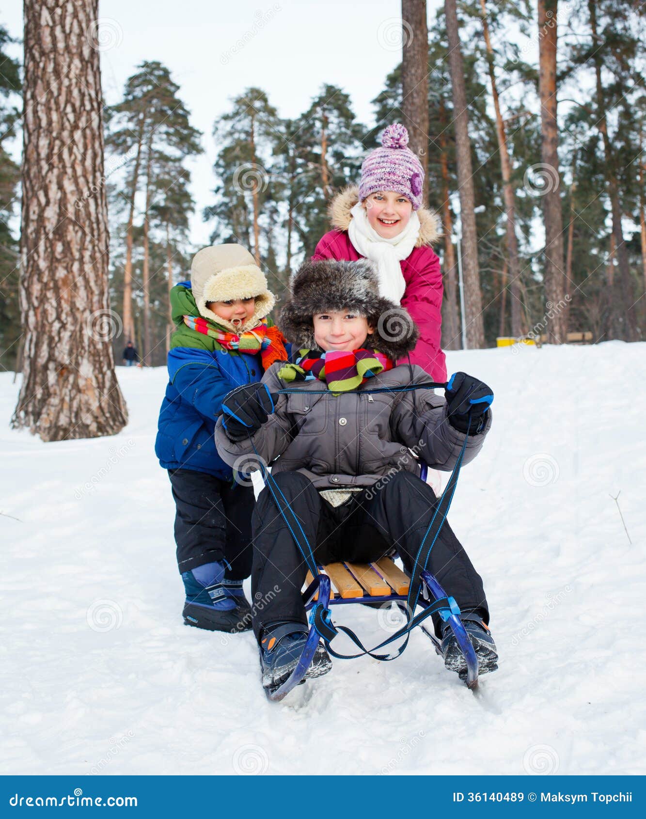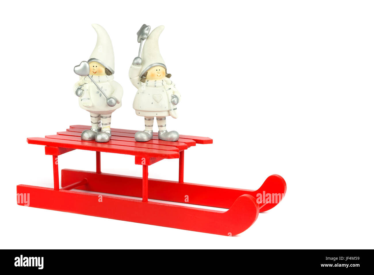 Meindekoartikel Winter Figuren Set - Kinder Auf Schlitten & Skier, Miniatur Deko