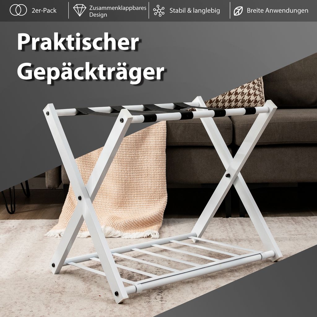 Schluss mit umherstehenden Koffern auf dem Boden! Dieses praktische 2er-Set Gepäckablagen aus Edelstahl bringt Ordnung in dein Zuhause, Gästezimmer oder Hotel. Die stabilen Dreibein-Ständer sind 70 cm hoch und bieten genug Platz für mehrere Koffer und Reisetaschen. Das Beste: Sie sind klappbar! Wenn du sie nicht brauchst, einfach zusammenfalten und platzsparend unter dem Bett oder im Schrank verstauen. Die Nylon-Bänder sorgen für zusätzliche Stabilität und verhindern das Verrutschen des Gepäcks. Perfekt für Vielreisende, Geschäftsleute oder um Gästen einen komfortablen Abstellplatz zu bieten. Einfach aufstellen, Koffer drauf - und schon sieht alles ordentlich aus und du musst dich nicht mehr bücken. Ein echter Game-Changer für mehr Komfort im Alltag!