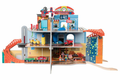Hape Tragbares Holz-Bahnhof Set - Komplettes Eisenbahn-Spielset Für Unterwegs