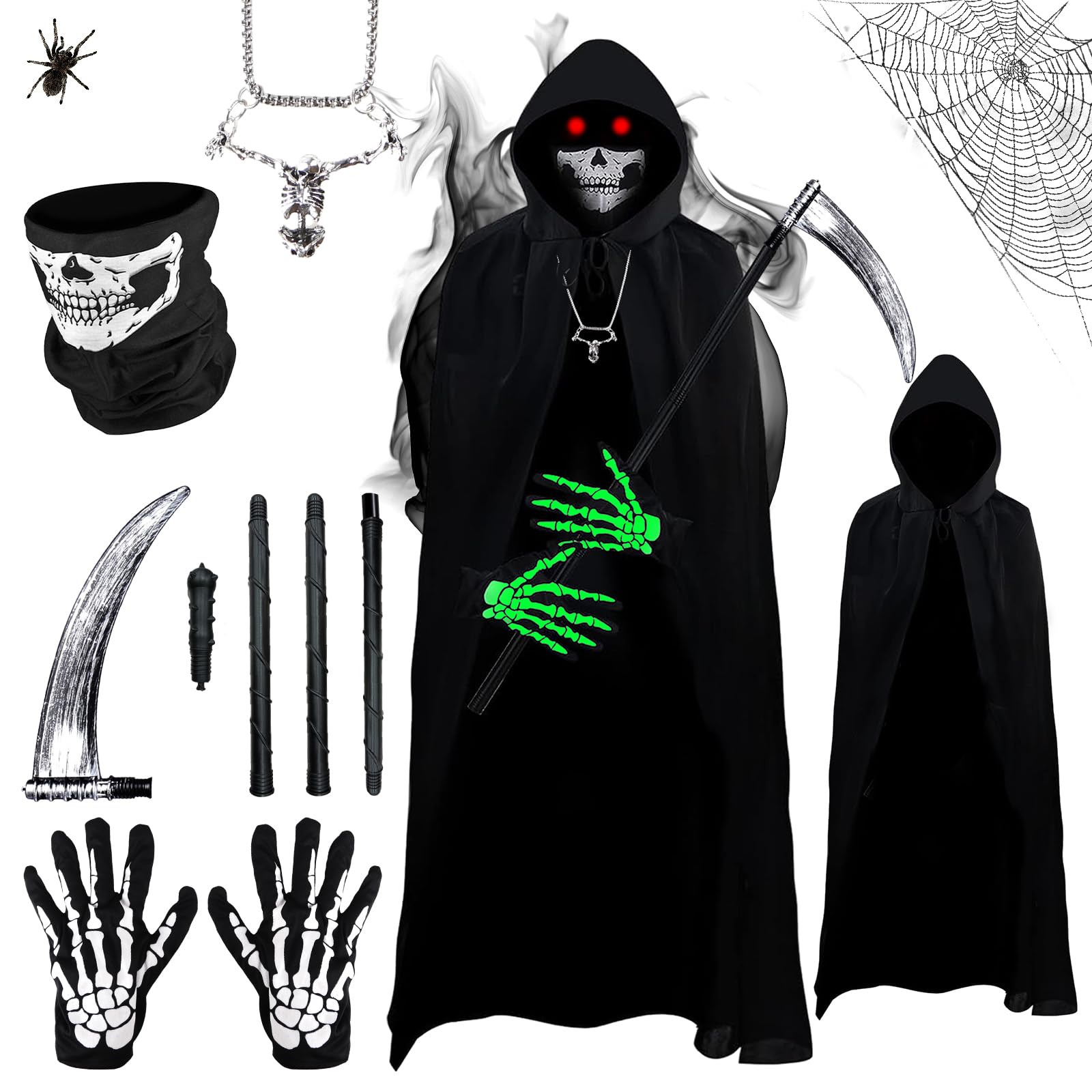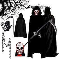 Sensenmann Halloween-Kostüm Set - Komplettset Mit Umhang, Maske Und Sense