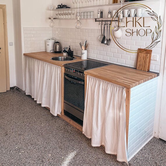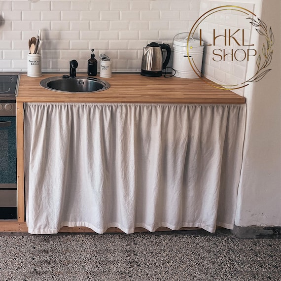 Boah, diese Vorhänge bringen richtig Landhaus-Charme in deine Küche! Das Waffelriegel-Muster in Taupe ist total im Trend und passt super zu modernen Bauernhaus-Küchen.