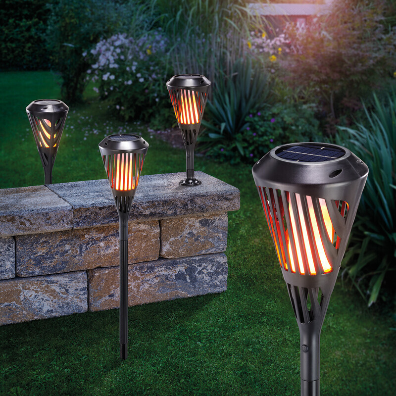 Lumineo Solar Gartenfackeln 4er Set - LED Flammeneffekt 45cm Für Terrasse & Garten