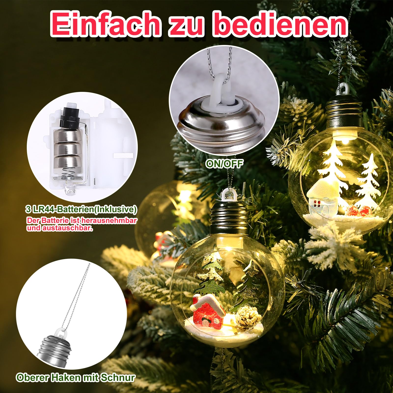 Encham 6er Set LED Weihnachtskugeln - Warmweiß, Transparent & Befüllbar Für Innen & Außen