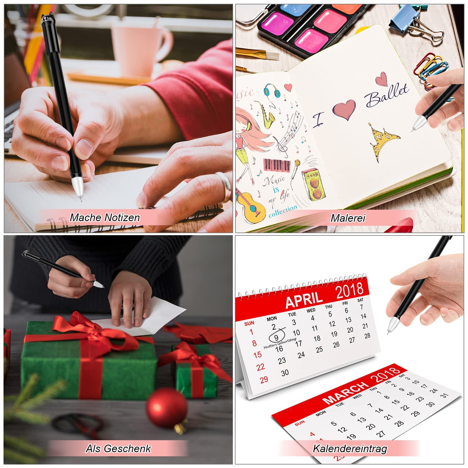 Wie süß sind denn diese Gelschreiber? 10 Stifte mit verschiedenen Tier-Motiven - Panda, Faultier, Koala und Affe! Jeder Stift sieht aus wie ein kleiner Ast mit einem Tierchen drauf. Die 0,5mm Mine schreibt superfein und trocknet schnell, kein Verschmieren mehr. Perfekt für Schulkinder, aber auch für Erwachsene, die ihrem Alltag mehr Spaß geben wollen. Die Stifte liegen gut in der Hand und man kann ewig damit schreiben, ohne dass es wehtut. Mit der Kappe bleibt die Spitze sauber in der Federmappe. Toll als Geschenk, für die Schultüte oder als Belohnung. Macht Hausaufgaben gleich viel angenehmer! Die Qualität ist echt gut - stabiler Kunststoff und klare Schrift. Es sind 3 Faultiere, 3 Koalas, 2 Affen und 2 Pandas im Set. Einfach niedlich und praktisch zugleich!