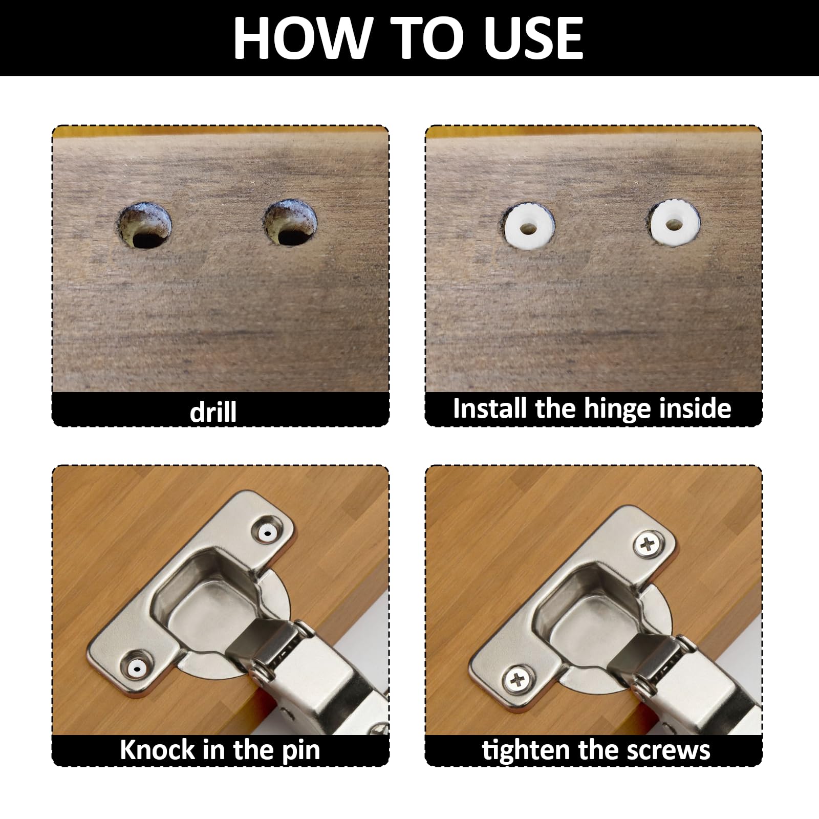 Möbelbauer aufgepasst! Dieses Set mit 100 Scharnierdübeln ist genau das Richtige für eure Möbelmontage. Perfekt für Schranktüren, Schubladen und andere Möbelteile. \\n\\nAus Nylon gefertigt - verschleißfest und langlebig. Die Dübel sorgen für eine bombenfeste Verbindung, die sich nicht so schnell lockert. \\n\\nMontage ist total einfach - keine Spezialwerkzeuge nötig. Einfach reinsetzen und festziehen, schon hält alles sicher. \\n\\nKompatibel mit den meisten Möbelscharnieren. Ob für die eigene Küche oder gewerbliche Einbauten - mit diesem Set seid ihr bestens ausgestattet. Spart Zeit und Nerven bei der Möbelmontage!