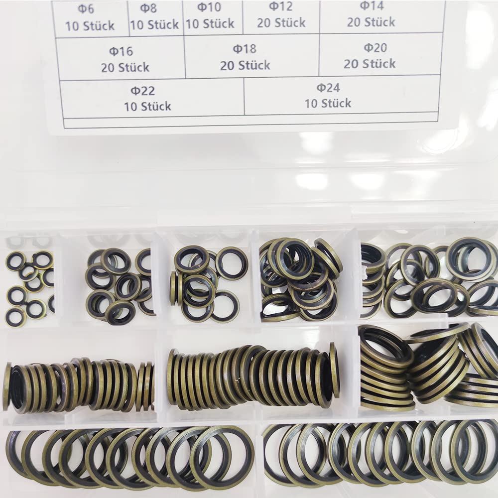 Für alle, die was dicht halten wollen! Dieses riesige Set mit 245 Dichtungsringen in 12 verschiedenen Größen von M6 bis M30 ist der absolute Alleskönner für Werkstatt und Haushalt. Jede Dichtung besteht aus einer cleveren Kombination von Gummi und Metall - der Metallring verhindert Überkompression, während der Gummiring für die perfekte Abdichtung sorgt. Super praktisch: Alles kommt in einer übersichtlichen Aufbewahrungsbox, damit du immer sofort findest, was du brauchst. Ob für Hydraulikanlagen, Rohrverbindungen, Ölablassschrauben am Auto oder Industriemaschinen - hier ist für jede Anwendung die passende Dichtung dabei. Die Größen sind klar beschriftet: 25x M6/M8/M10/M12/M14, 20x M16/M18/M20/M22, 15x M24/M27 und 10x M30. Ölbeständig, hohem Druck gewachsen und extrem langlebig. Nie wieder undichte Stellen - mit diesem Set hast du für Jahre vorgesorgt. Ein Muss für jeden, der gerne schraubt und repariert!