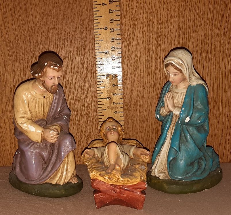Wunderschönes Krippen-Set aus Metall für die Weihnachtszeit! Enthält die komplette Heilige Familie: Maria, Josef, Jesuskind, Ochse und Esel - alles fein detailliert und handwerklich perfekt verarbeitet. Maria und Josef sind jeweils 3cm hoch, Ochse, Esel und Wiege 2,5cm lang - ideal für Mini-Krippen und Bastelprojekte. Perfekt um mit Kindern zusammen die Weihnachtsgeschichte nachzustellen. Aus robustem Metall gefertigt - hält viele Jahre. Made in Italy - echte Qualität! Ob für die eigene Weihnachtsdekoration oder als Geschenk - dieses Set bringt den wahren Weihnachtsgeist in dein Zuhause. Einfach aufstellen und sich an der schönen Tradition erfreuen!