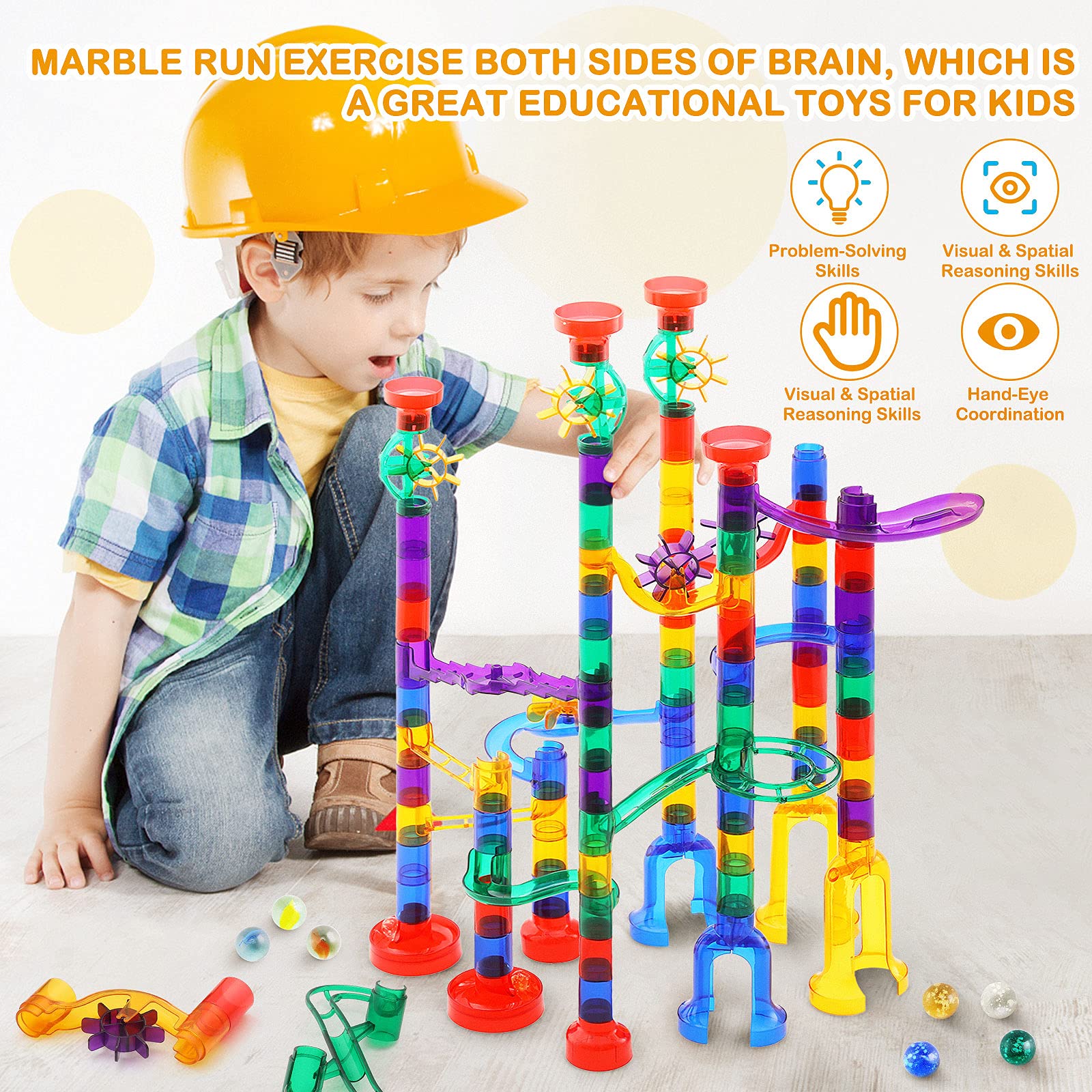 Kinmsito Murmelbahn 197 Teile - Kugelbahn Set Mit 147 Elementen & 50 Glasmurmeln