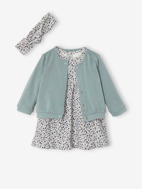 Vertbaudet Mädchen Baby-Set Mit Blumen - Kleid & Haarband Aus 100% Baumwolle