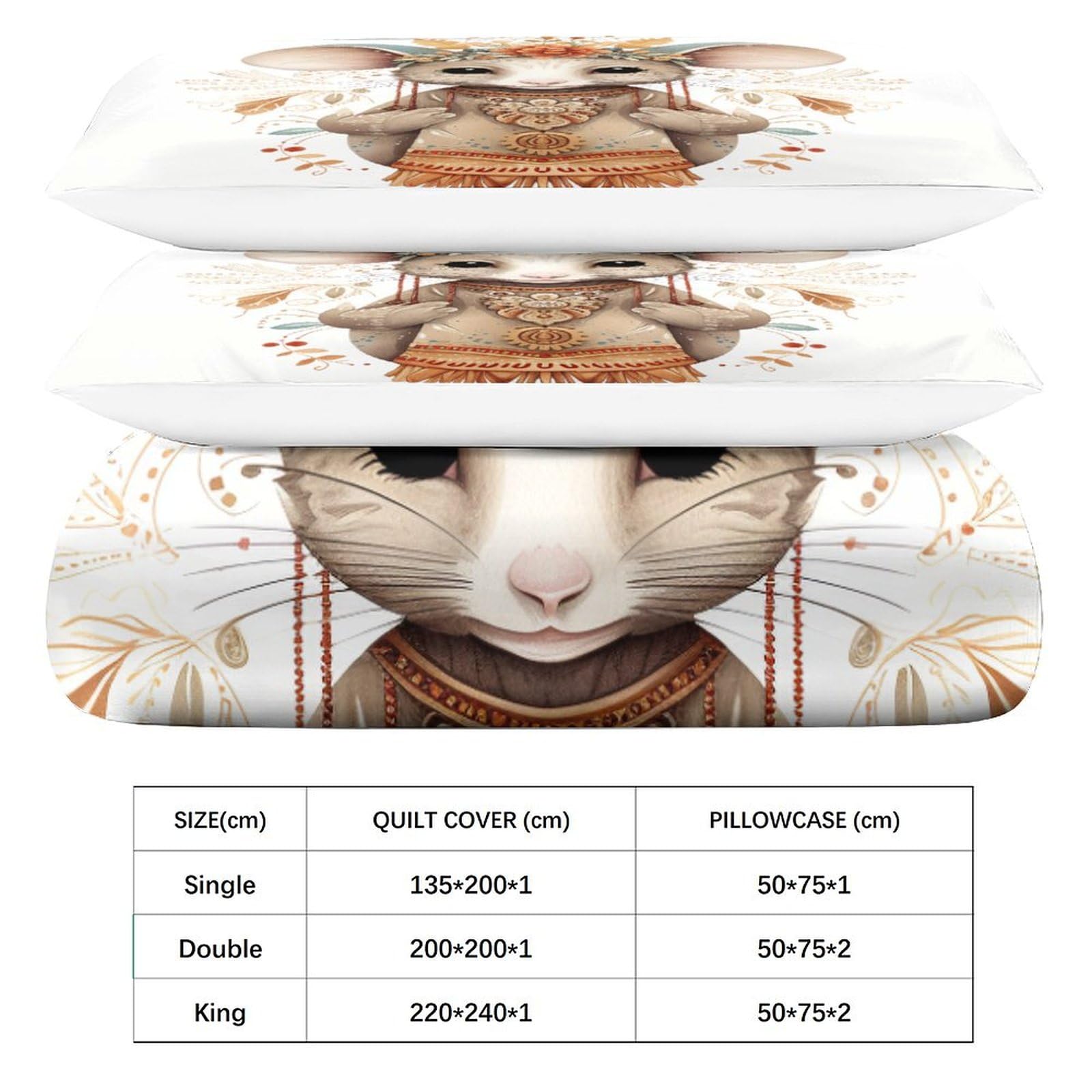 Süßes Bettwäsche-Set mit niedlichen Mäusen im 3D-Look! Perfekt für Kinderzimmer oder Jugendliche. Das Material ist halb Baumwolle, halb Mikrofaser - super weich, atmungsaktiv und hautfreundlich. Inklusive einem Bettbezug und zwei Kissenbezügen. Der Reißverschluss ist versteckt, sieht also schick aus und hält lange. Einfach in der Maschine bei 40 Grad waschbar und trocknergeeignet. Schrumpft nicht ein und die Farben bleiben kräftig. Macht das Bett zum Lieblingsplatz! Tolle Geschenkidee zum Geburtstag oder zu Weihnachten. Verfügbar in Einzel-, Doppel- und King-Größe.