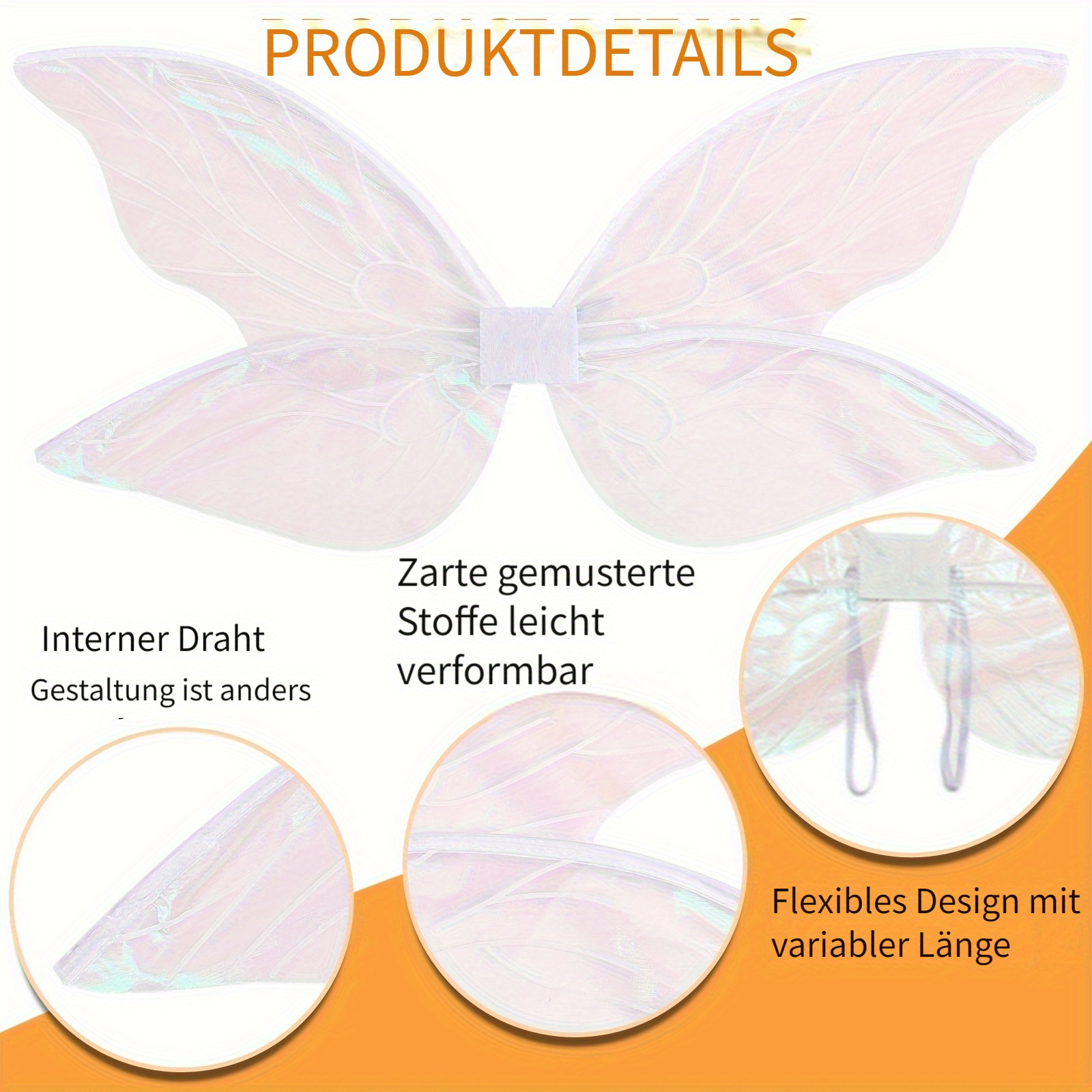 Träumst du von einer magischen Verwandlung? Dieses komplette Feen-Kostüm-Set macht dich zur strahlenden Elfe! Die wunderschönen Schmetterlingsflügel aus transparentem Organza glitzern im Licht und haben diesen magischen Verlaufseffekt, der alle Blicke auf sich zieht. Mit dem verstellbaren Gummiband sitzen sie perfekt und bleiben auch beim Tanzen sicher an Ort und Stelle. Das Set enthält alles, was du brauchst: die atemberaubenden Flügel, ein bezauberndes Blumendiadem, realistische Elfenohren, einen glitzernden Feenstab und magische Pailletten für extra Glamour. Perfekt für Halloween, Karneval, Geburtstagspartys oder einfach nur zum Spielen. Die hochwertigen Materialien sind angenehm zu tragen und die Flügel lassen sich platzsparend zusammenklappen. Ob für deine Tochter oder dich selbst - mit diesem Set werdet ihr zur Königin der Feenwelt und schafft unvergessliche Erinnerungen. Mach deine Märchen-Träume wahr!