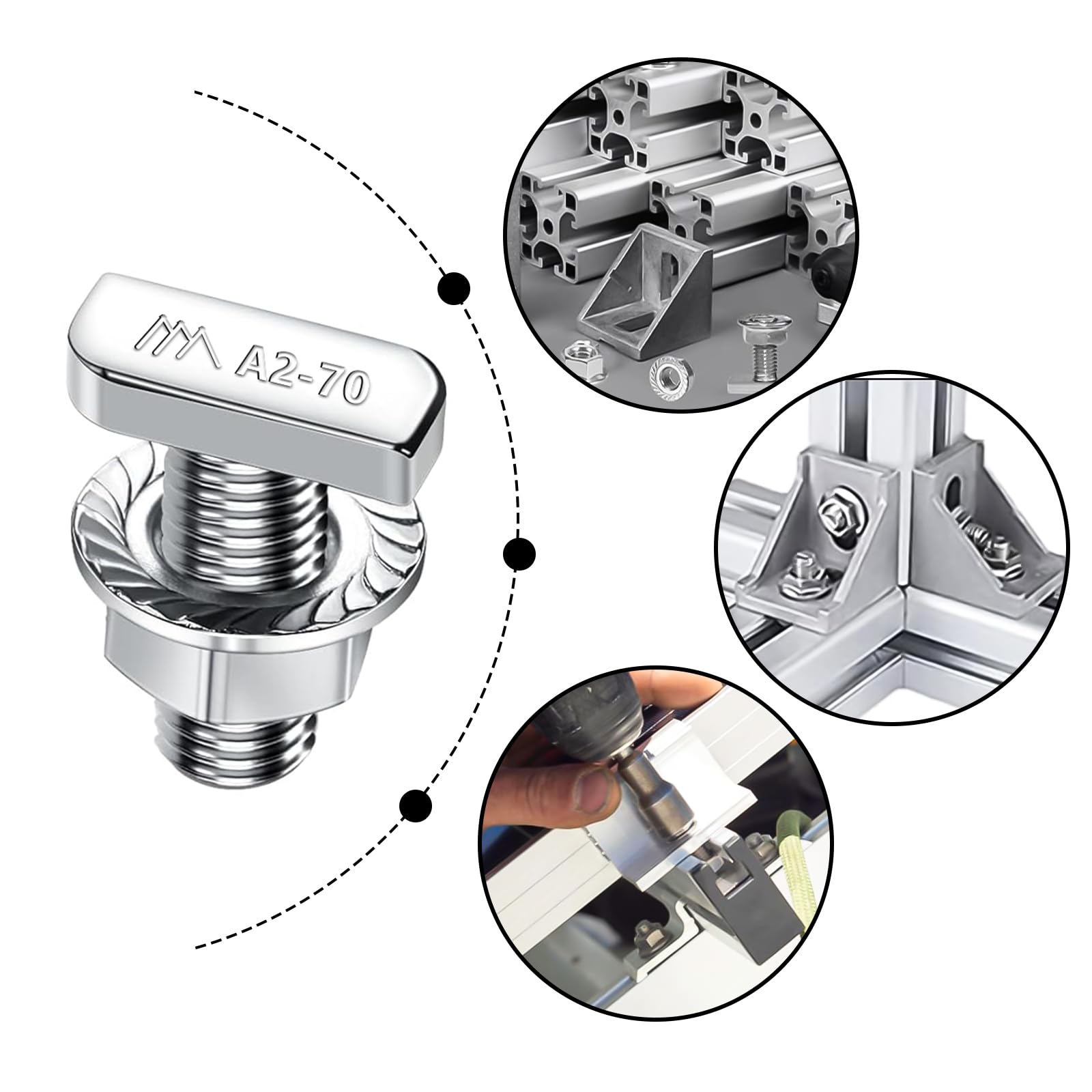 Hammerkopfschrauben M8x20 Edelstahl A2-70 - 10er Set Mit Flanschmuttern Für PV-Montage