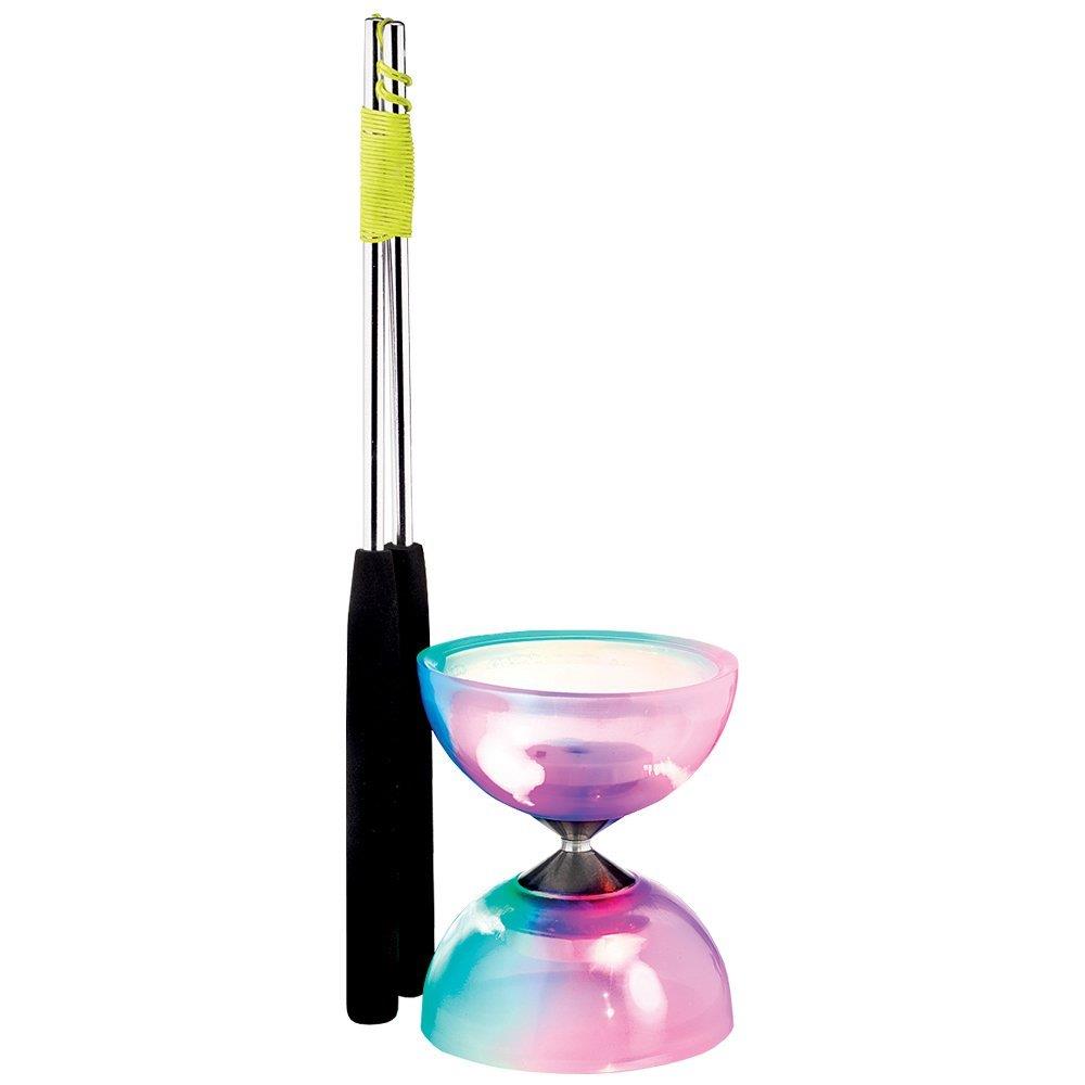 Jonglieren lernen war noch nie so cool! Dieses LED Diabolo leuchtet in bunten Farben und macht jede Darbietung zum echten Hingucker. Mit dreifachem Kugellager für extra lange Drehzeiten - perfekt für Anfänger und Fortgeschrittene. Das stoßabsorbierende Gummi-Material ist super robust und bricht nicht. Im Set enthalten: Diabolo, 2 Handstäbe, Ersatzschnur und Tragetasche. Ob drinnen oder draußen - hier kommt garantiert keine Langeweile auf!