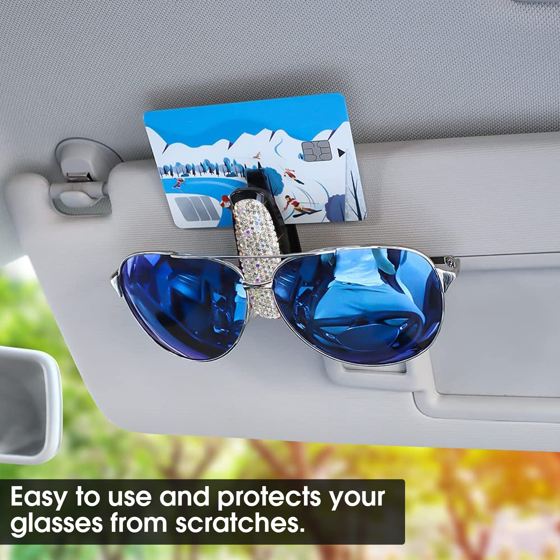 PTNKUIIY Auto Sonnenbrillenhalter 2er-Set - Mit Strass Steinen, Für Visier & Karten