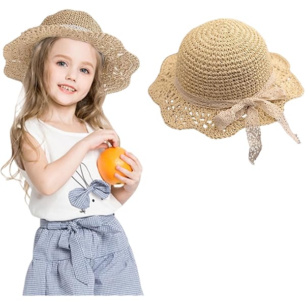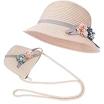 AOOPOO Mädchen Strohhut Set - Mit Tasche Für Strand & Urlaub
