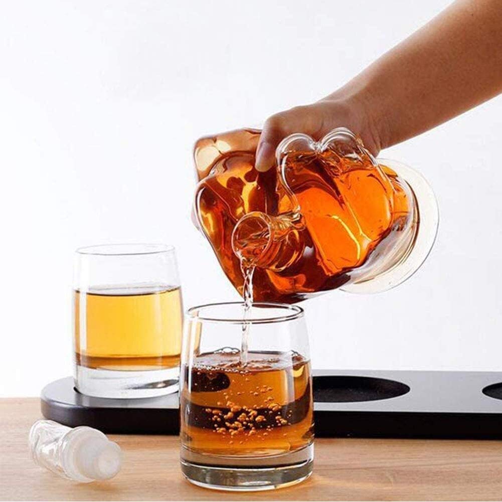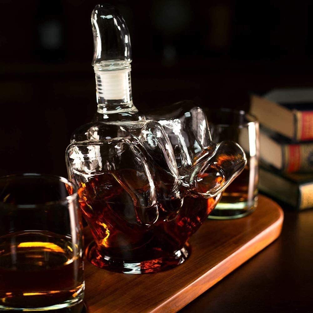 Das provokative Whisky-Set für echte Gentlemen! Der Dekanter in Form eines Mittelfingers hat 1000 ml Fassungsvermögen und ist einfach ein Hingucker. Im Set enthalten: 2 Whisky Tumbler à 300 ml, 6 Kühlsteine (kein Verwässern!), Trichter und Holztablett. Perfekt für Whisky, Scotch oder Bourbon. Das Set sieht nicht nur cool aus, sondern ist auch praktisch - der Glasstopfen hält das Aroma frisch. Ideal als Geschenk für Geburtstage, Weihnachten oder einfach so. Mach deine Home-Bar zum Eyecatcher! Für alle, die Humor und Stil kombinieren wollen.