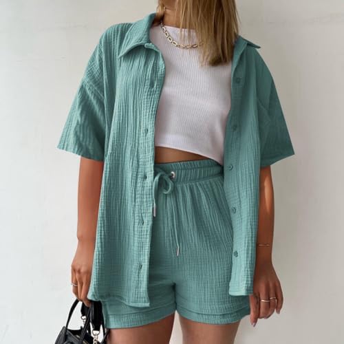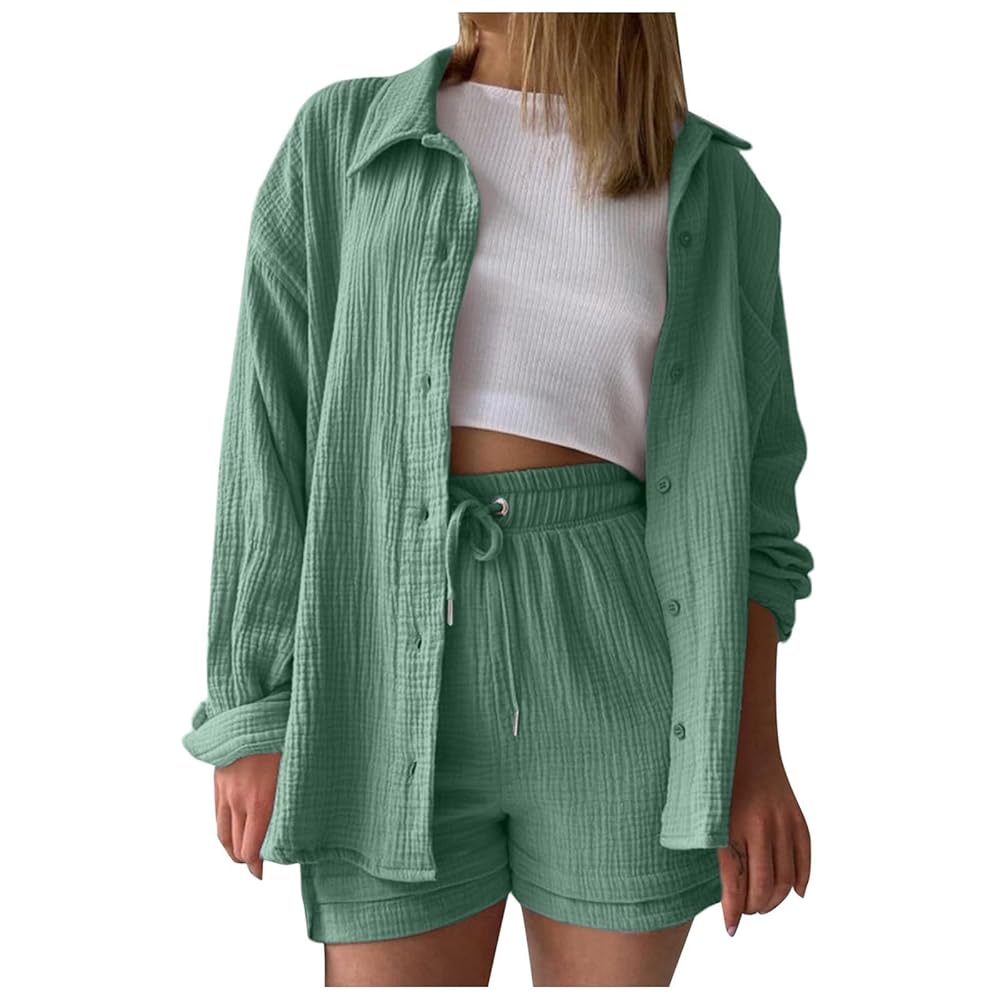 Dieser Zweiteiler ist dein neuer Sommer-Liebling! Bestehend aus einer schicken Langarm-Bluse und passenden Shorts aus weichem Musselin-Stoff. Super bequem zu tragen dank der Mischung aus Polyester und Baumwolle - atmungsaktiv und mit angenehmem Tragekomfort. Perfekt für alle Gelegenheiten: Ob im Alltag, im Urlaub, auf Partys oder einfach nur zu Hause als Loungewear. Das elegante Design mit Knopfleiste sieht einfach klasse aus und macht dich zur Style-Queen. Y2K Vibes inklusive! Ideal für warme Tage, Strandurlaub oder als Hausanzug. Siehst du darin einfach umwerfend aus! Ein Outfit, das sich vielseitig kombinieren lässt und in dem du dich den ganzen Tag wohlfühlst.