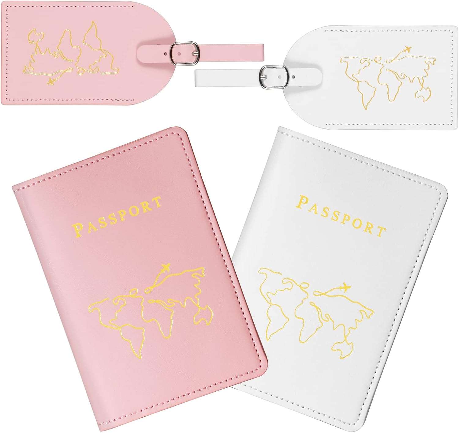 PATIKIL Reisepasshülle & Kofferanhänger Set - PU Leder Passhülle 10,5x14cm Rot/Grau