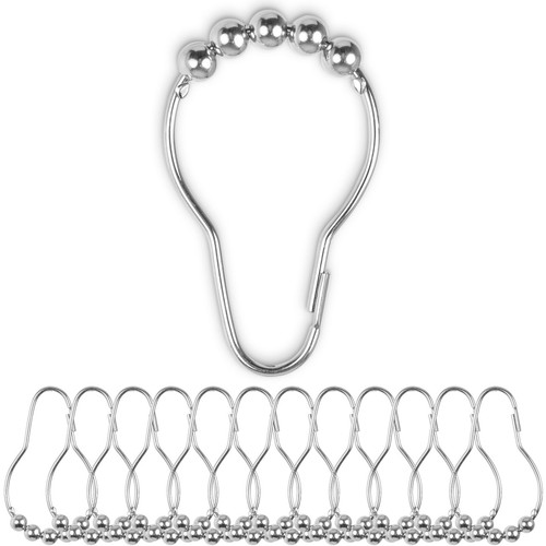 QUARKZMAN Duschvorhangringe 6er Set - Praktische Haken Aus Stahl Für Deine Duschvorhangstange | Silber