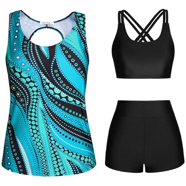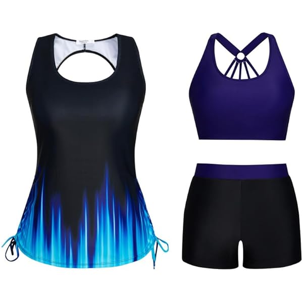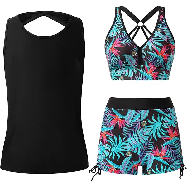 3-teiliger Tankini Damen Set - Push-up Bikinioberteil Mit High Waist Shorts