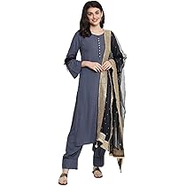 Tradition trifft Moderne! Dieses wunderschöne ANNI DESIGNER Kurta Set besteht aus 100% Rayon Viskose und fühlt sich angenehm weich auf der Haut an. Das Set beinhaltet eine Kurta, Hose und Dupatta in elegantem Schwarz mit dekorativer Stickarbeit. Der gerade Schnitt mit wadenlanger Länge und 3/4-Ärmeln sorgt für einen lässigen, aber stilvollen Look. Perfekt für traditionelle Anlässe, Freizeit oder festliche Events. Die Passform ist normal geschnitten - bitte beachten Sie die Größentabelle vor der Bestellung. Mit Rundhalsausschnitt und liebevollen Details ist dieses Set ein echter Hingucker. Ob für den täglichen Gebrauch oder besondere Feierlichkeiten - dieses ethnische Outfit macht immer eine gute Figur. Einfach anziehen und sich wohlfühlen! Pflegehinweis: Nur chemische Reinigung. Tauchen Sie ein in die Welt eleganter ethnischer Mode mit diesem vielseitigen Kurta Set.