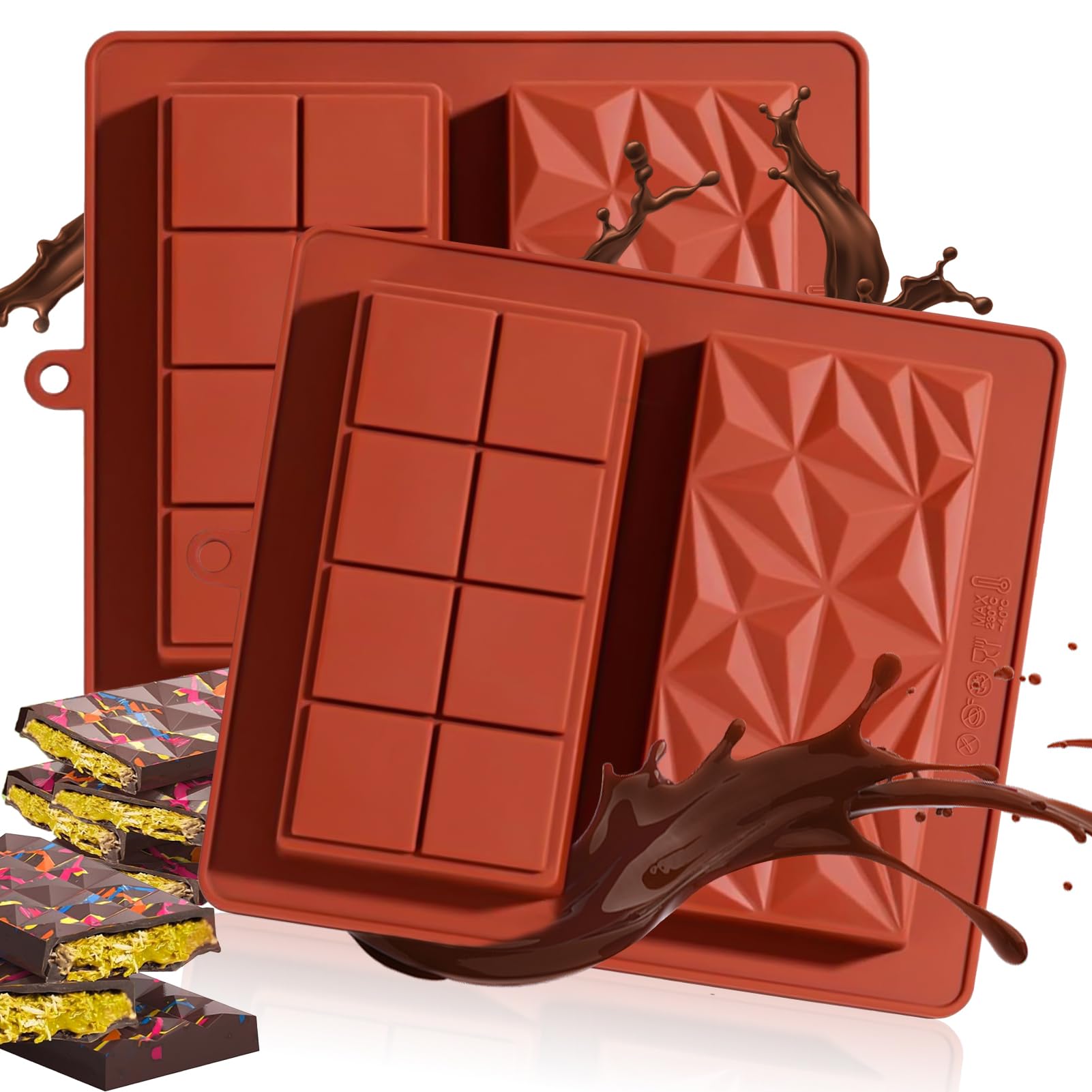 Schokoladen-Fans und Hobby-Konditoren - diese 2 Silikonformen sind ein Traum! Aus lebensmittelechtem, BPA-freiem Silikon - weich und extrem langlebig. Die Antihaft-Beschichtung sorgt für perfektes Entformen - keine zerbrochenen Schokoladen mehr! Spülmaschinenfest und leicht zu reinigen. Ideal für Schokoladenriegel, Pralinen oder Dubai-Schokolade. Das 2er-Set ist super praktisch - eine Form für dich, eine zum Verschenken! Zusammenrollbar für platzsparende Aufbewahrung. Perfekt für Feiertage, Geburtstage oder einfach für leckere Alltags-Snacks. Ob mit dunkler, Milch- oder weißer Schokolade - deine Kreationen werden perfekt! Mach deine Küche zur Schokoladen-Manufaktur - einfach befüllen, kühlen und genießen!
