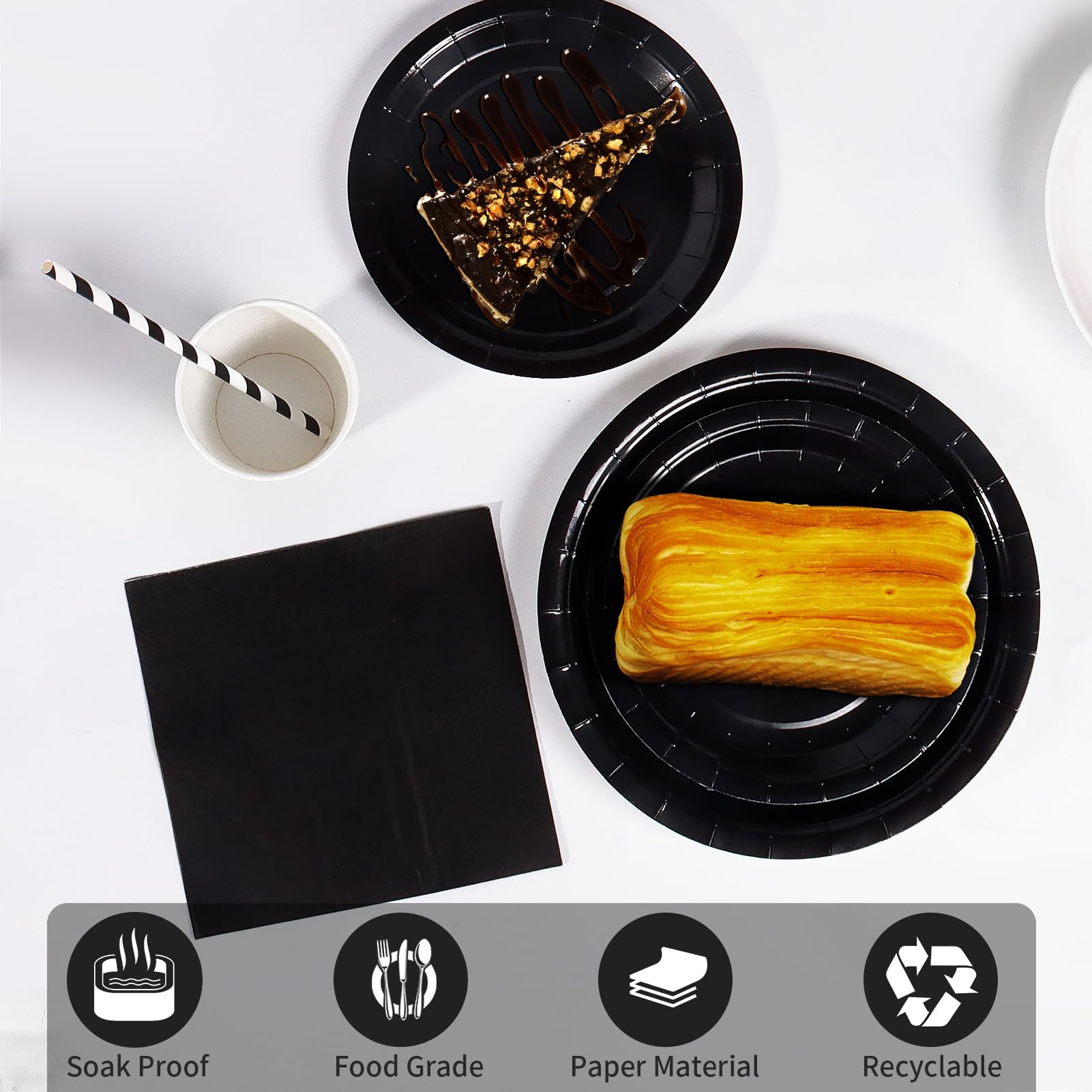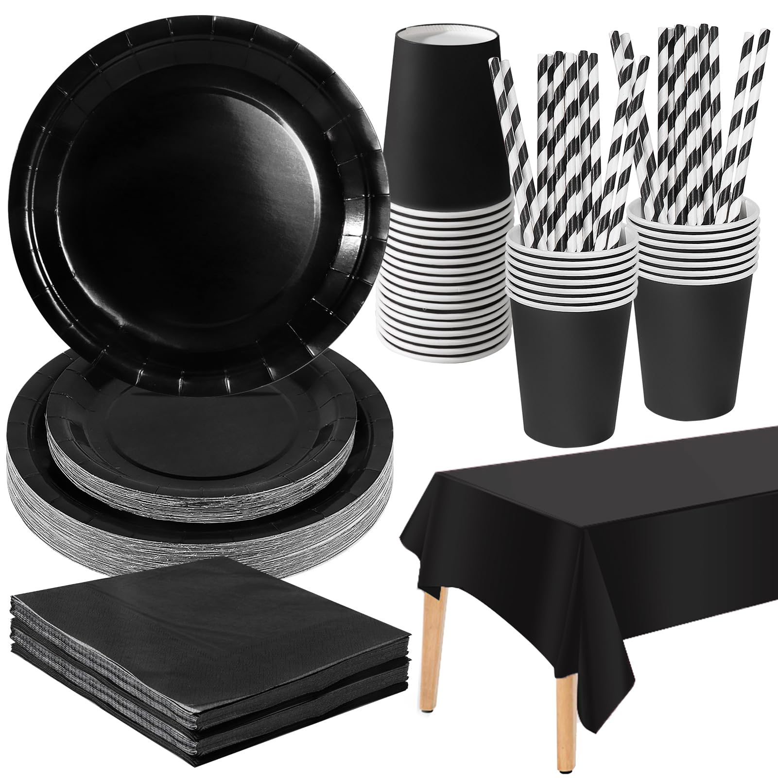 96-teiliges Partygeschirr Set Schwarz - Für Bis Zu 24 Gäste
