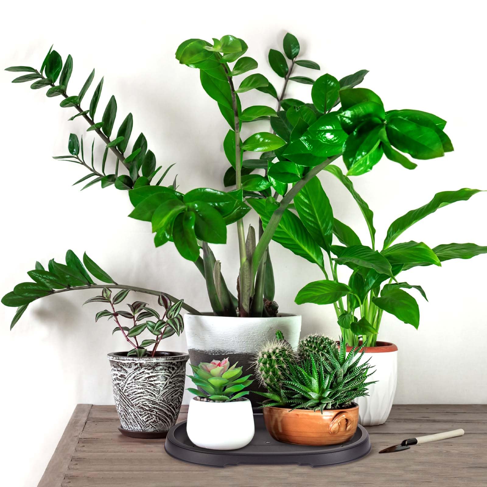 Perfekt für alle Pflanzen-Fans! Diese praktischen Bonsai-Feuchtigkeitstablette fangen überschüssiges Gießwasser auf und sorgen für die richtige Luftfeuchtigkeit um deine Pflanzen. Aus robustem Kunststoff, schwarz und dezent - passen zu fast jedem Blumentopf. Maße: ca. 27,9 x 20,3 cm (außen), innen etwa 25,1 x 17,8 cm. Groß genug für die meisten Bonsai-Töpfe, Kakteen, Sukkulenten oder Orchideen. Schützen deine Möbel vor Wasserflecken und machen die Reinigung einfacher. Einfach ein paar dekorative Steine (nicht im Lieferumfang) reinlegen, Wasser dazu - und schon hast du eine tolle Feuchtigkeitsquelle für deine Pflanzen. Super als Geschenk für Pflanzenliebhaber! Im Set sind 2 Schalen enthalten. Mach deine Pflanzenpflege einfacher und dein Zuhause schöner!