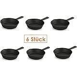 4er Set Servierpfannen Gusseisen Rund Mit Holzuntersetzern - 22cm
