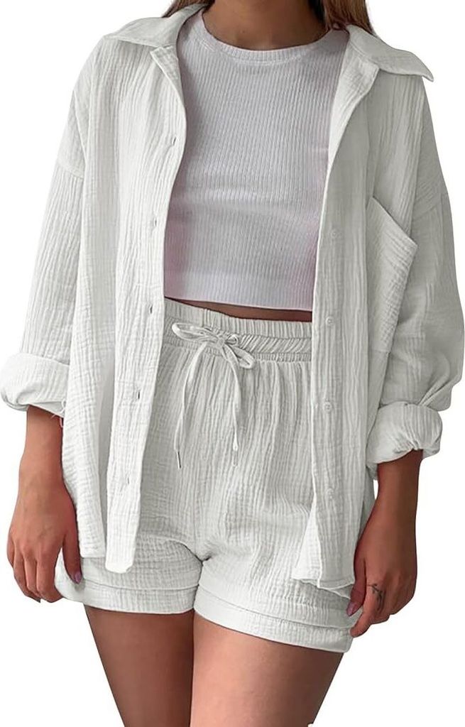 Boah, ist das bequem! Dieses superleichte Musselin-Set von KILOXYEFRO ist der absolute Hit für den Sommer. Das Top und die Shorts kannst du einzeln kombinieren - total praktisch! Aus weichem Musselin-Stoff, der sich mega angenehm auf der Haut anfühlt und dabei richtig luftig ist. Perfekt für heiße Tage, ob zu Hause, beim Shoppen oder auf dem Festival. Das lässige Design mit der langen Bluse und den kurzen Hosen sieht einfach immer gut aus. Übrigens: Der Stoff ist so leicht, dass du das Set kaum spürst - fast wie zweite Haut! Es gibt verschiedene Farben zur Auswahl, und die Qualität ist so gut, dass es auch nach häufigem Waschen noch top aussieht. Einfach anziehen und den Sommer genießen - mehr Komfort geht kaum! Ob zum Strand, in die Stadt oder einfach nur für daheim - mit diesem Set bist du immer perfekt angezogen. Und das Beste: Du siehst dabei auch noch mega stylisch aus!