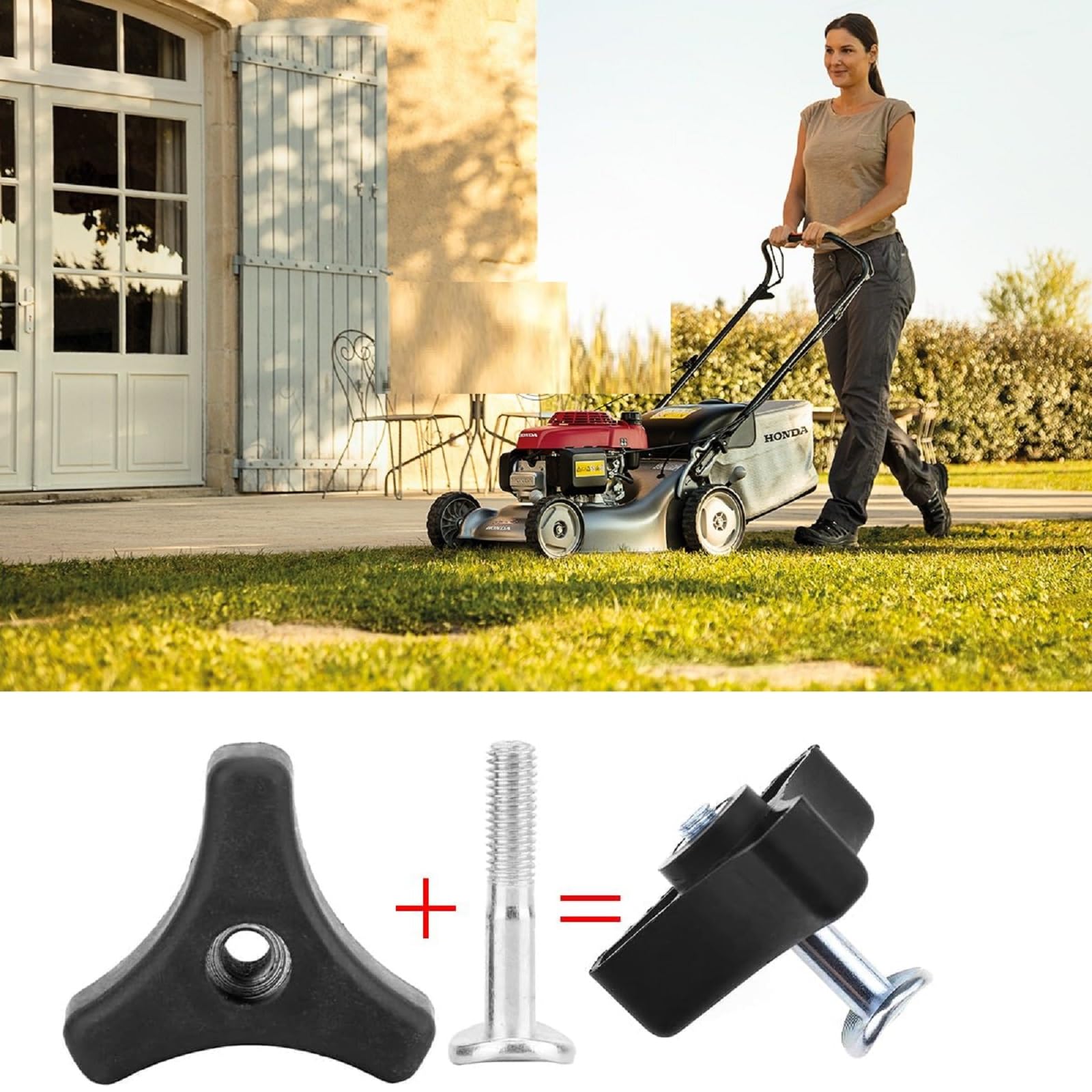 Kennst du das? Der Griff am Rasenmäher ist kaputt und du willst nicht gleich ein neues Gerät kaufen? Mit diesem Universal-Griffschrauben-Set von Hugwish machst du deinen Mäher im Handumdrehen wieder fit! Die Flügelmuttern haben ein cleveres dreieckiges Design, das super in der Hand liegt und nicht rutscht. Das durchsichtige Innengewinde siehst du genau, wie fest du die Schraube anziehst. Total praktisch: Du brauchst kein extra Werkzeug - einfach die alten Griffe raus, neue rein und festdrehen. Die Maße passen für die meisten Rasenmäher: Kopf 55x43mm mit 6mm Innengewinde. Hergestellt sind die Teile aus robustem Metall und Kunststoff - rostfrei und mega langlebig. Ob bei Regen oder Sonnenschein - das Material macht alles mit. Perfekt also für den Einsatz im Garten. Das Set ist wirklich universell einsetzbar und passt zu den meisten Mäher-Modellen. So ein kleiner Helfer sollte in keiner Garten-Werkstatt fehlen. Einfach bestellen, einbauen und weiter mähen - easy peasy!