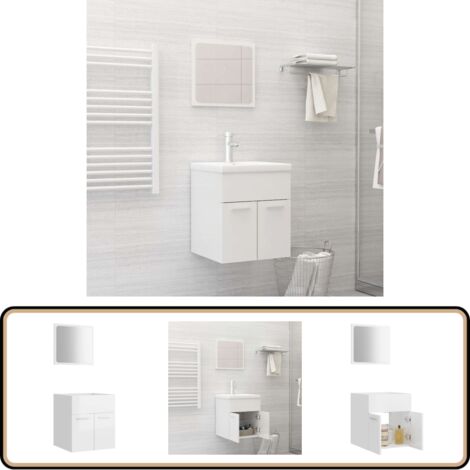 Modernes Bad - mehr Stauraum! Dieses stylische 2-teilige Badmöbel-Set in Hochglanz-Weiß bringt Ordnung in dein Badezimmer. Der Unterschrank (60x38,5x45cm) bietet platz für Pflegeprodukte und Putzzeug, dazu ein eleganter Spiegel (60x37cm). Aus stabilem Holzwerkstoff - leicht zu reinigen mit feuchtem Tuch. Max. Belastung 16kg - also vorsichtig mit schweren Gegenständen. Einfacher Zusammenbau - Schritt für Schritt erklärt. Waschbecken nicht im Lieferumfang - aber perfekt dafür vorbereitet. Macht aus jedem Bad einen Wohlfühlbereich! Einfach aufbauen und sich über den neuen Look freuen.