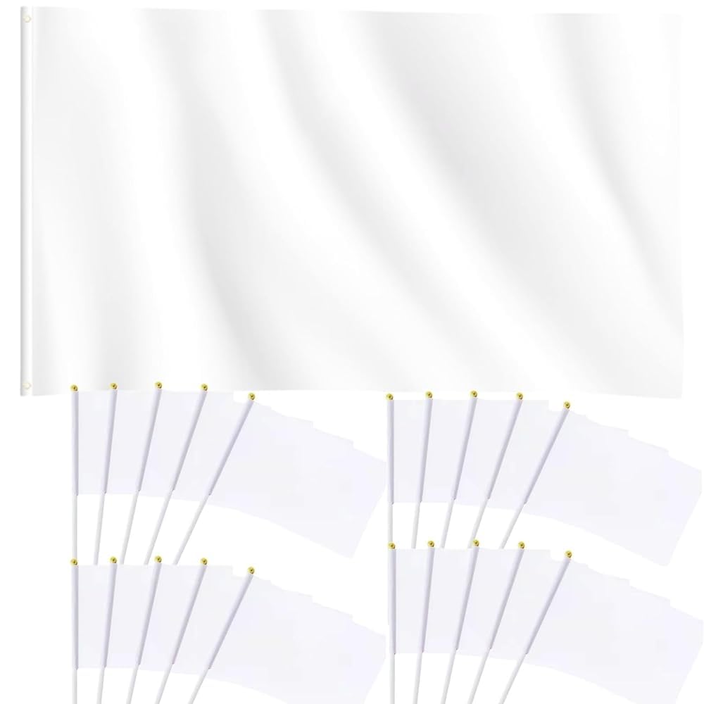Naisfei 24 Stück Blanko Flaggen Set - Weiße Mini-Fähnchen Zum Selbst Gestalten 14x21 Cm