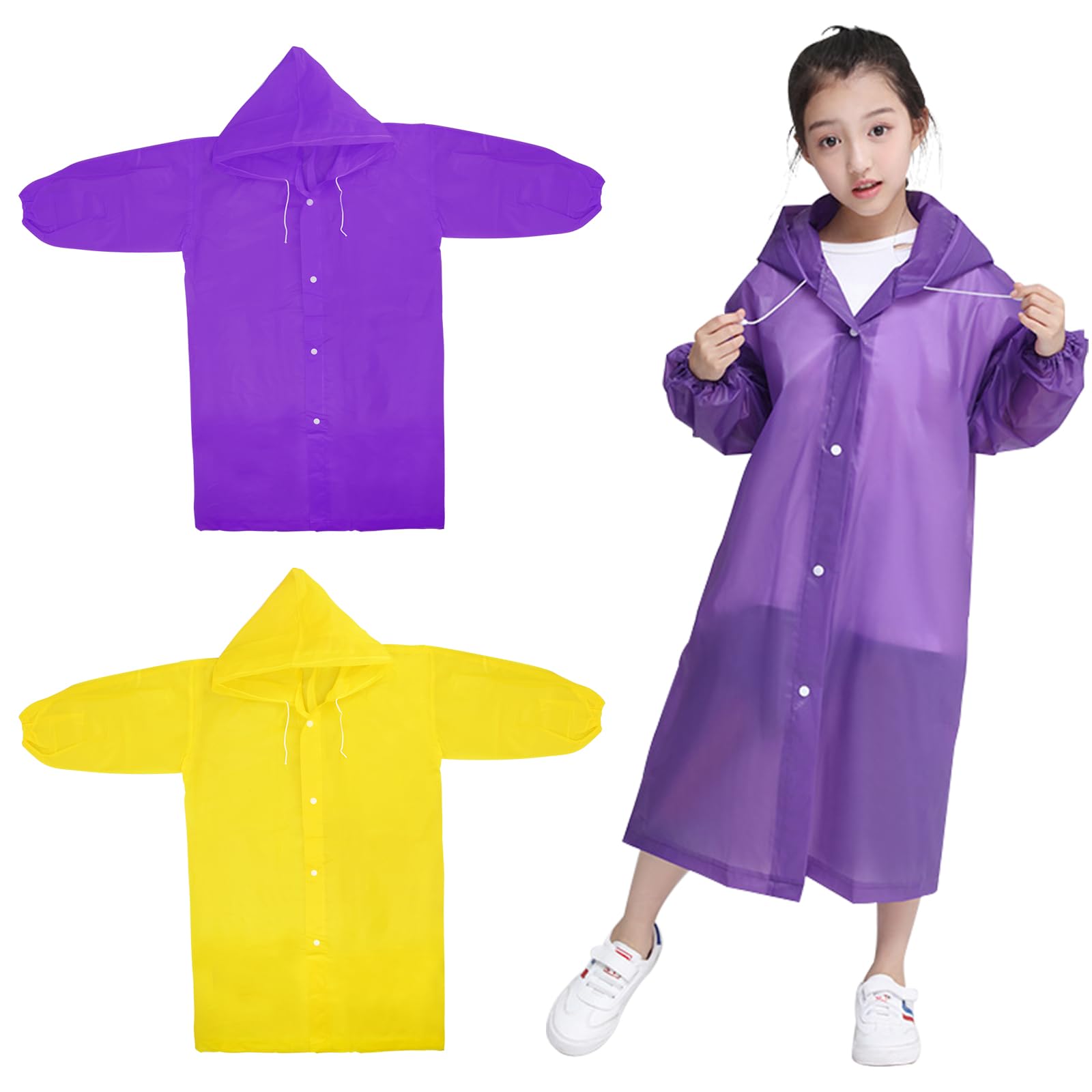 Rieoany Regenponcho Kinder 2er Set - Wiederverwendbar Mit Rucksackplatz, Gelb & Lila